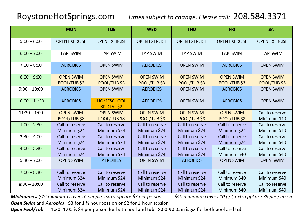Roystone Hot Springs Schedule